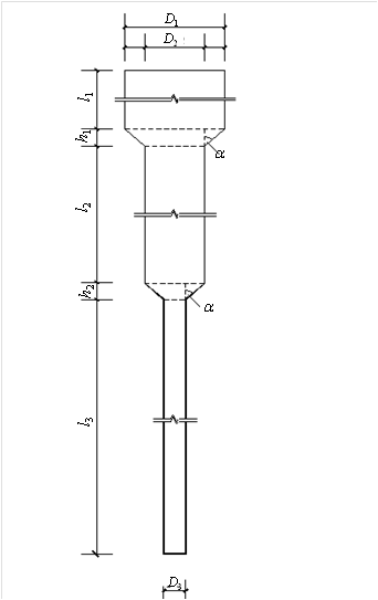 D1、D2、D3—自上而下第一、第二、第三段樁身的直徑;