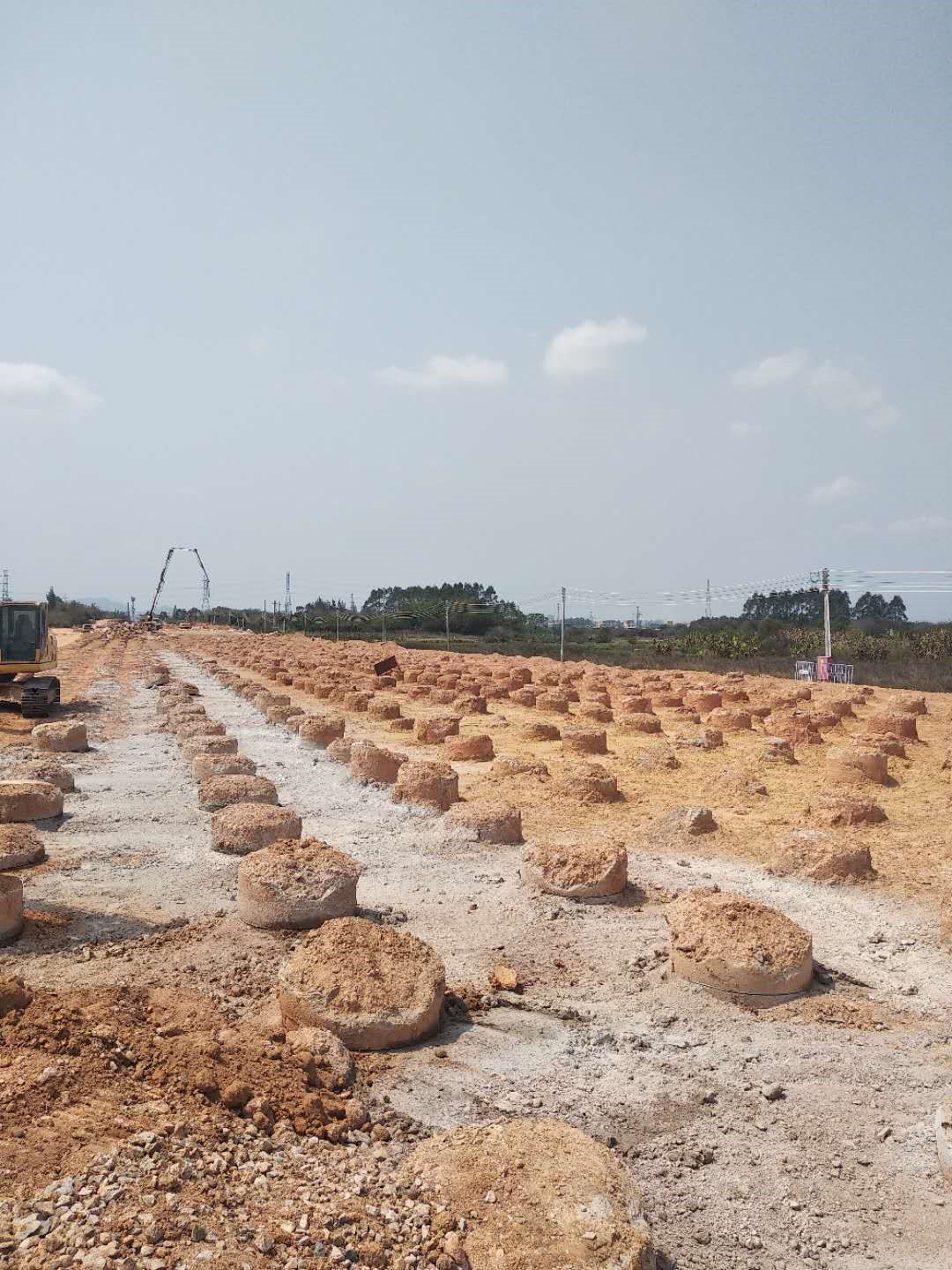 擠排土變徑樁施工采用全排、全擠及上擠(部分擠)下排復合工法的,鉆孔次序均為由內到外依次鉆進成孔;施工采用上擠下排及上排下擠復合工法的,鉆進成孔次序由上到下依次陸續成孔。疊加復合套筒鉆具依次鉆進至各自設計深度后停鉆,壓灌混凝土開始,邊壓混凝土邊提鉆,提鉆次序中心鉆具→中間套筒鉆具→外套筒鉆具,依次陸續同步提升,中心鉆具底端與中間套筒鉆具底端平齊后,兩鉆具同時同步提升,兩鉆具底端與外套筒鉆具底端平齊后,三鉆具同時同步提升,直到提出孔口標高,同時混凝土壓灌至設計標高。